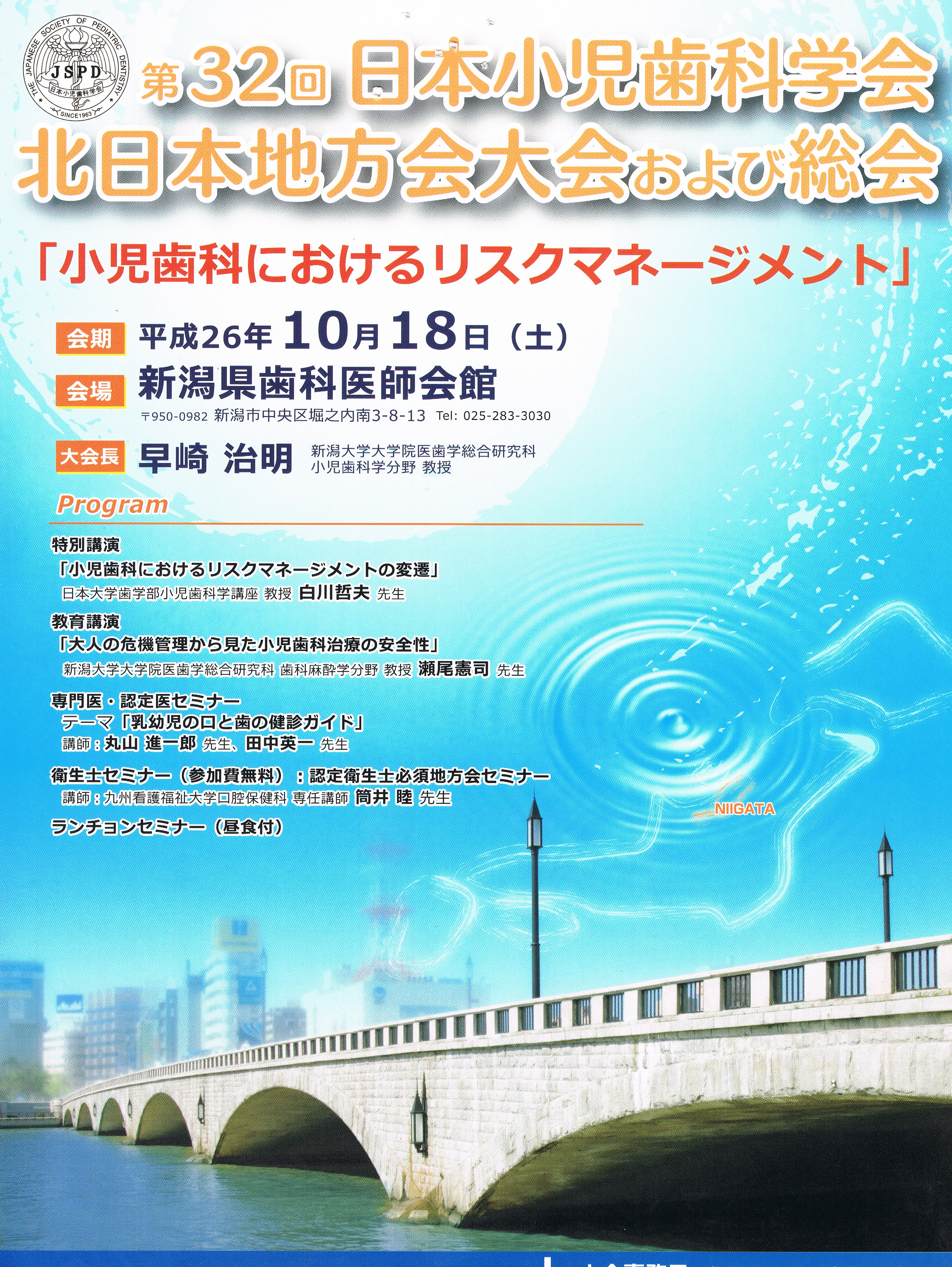 先週の土曜日、診療室は勤務医の三澤先生にお願いして、新潟県歯科医師会館で行われた第32回日本小児歯科学会北日本地方会に参加して来ました。
