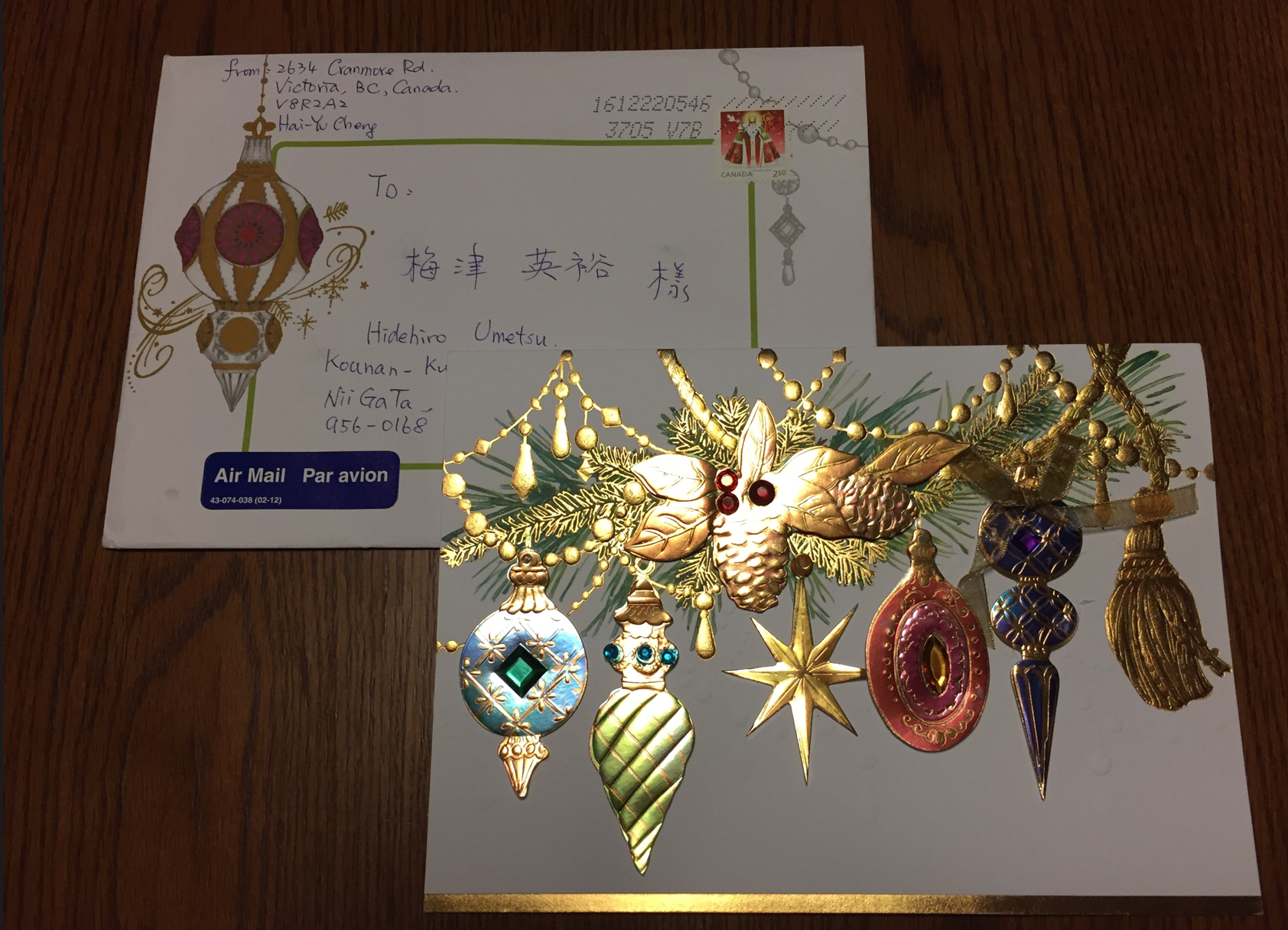 欧米ではこの時期は、年賀状ではなくクリスマスカードでしょうか。先日もカナダ在住の友人から素敵なカードをいただきました。