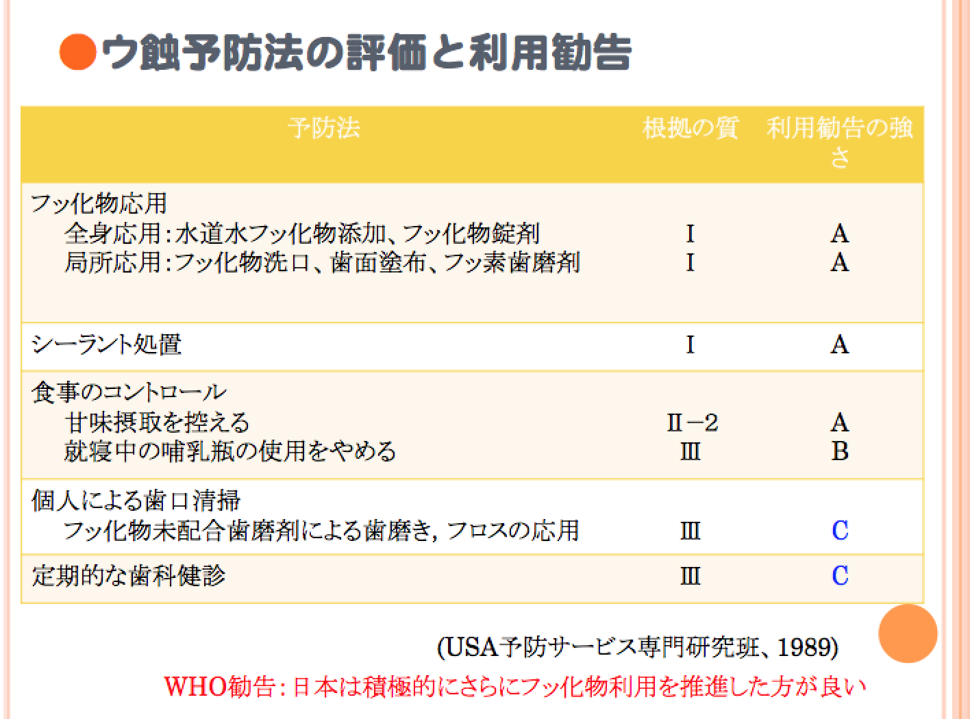 むし歯予防に対して色々な方法がありますが、それらを論文や各種調査で調べた結果があります。
