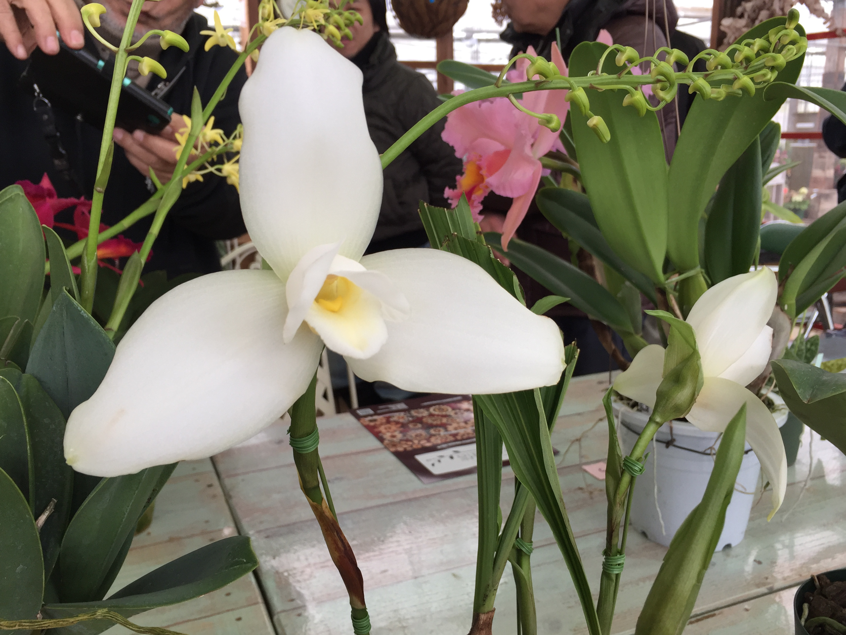 最初の食育・花育センターでの作品展では、展示だけでなく会員の蘭の分け株の販売も行いますので、珍しい蘭をお安く手に入れることもできます。
