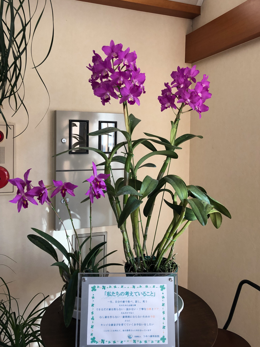 うめつ歯科医院も院内はクリスマスの飾り付けが行われています。そのほかにもう一つ華やかさを飾るのはランの花です。冬はお花が少なくなりますが、洋ランを栽培している人たちには一番嬉しい季節です。多くの洋ランは南米が原産ですので、日本が冬の時期、南米は夏。まさに花の季節です。