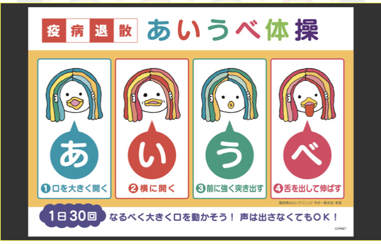 鼻呼吸しやすくする『あいうべ体操』をお話ししました。