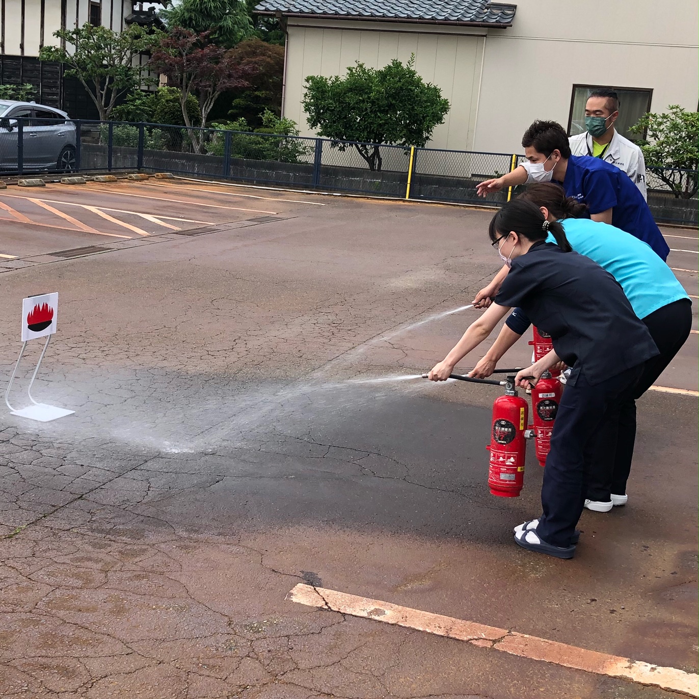 先日、うめつ歯科医院では定期的に行なっている消防訓練を、にいつ天神整骨院さんと実施しました。