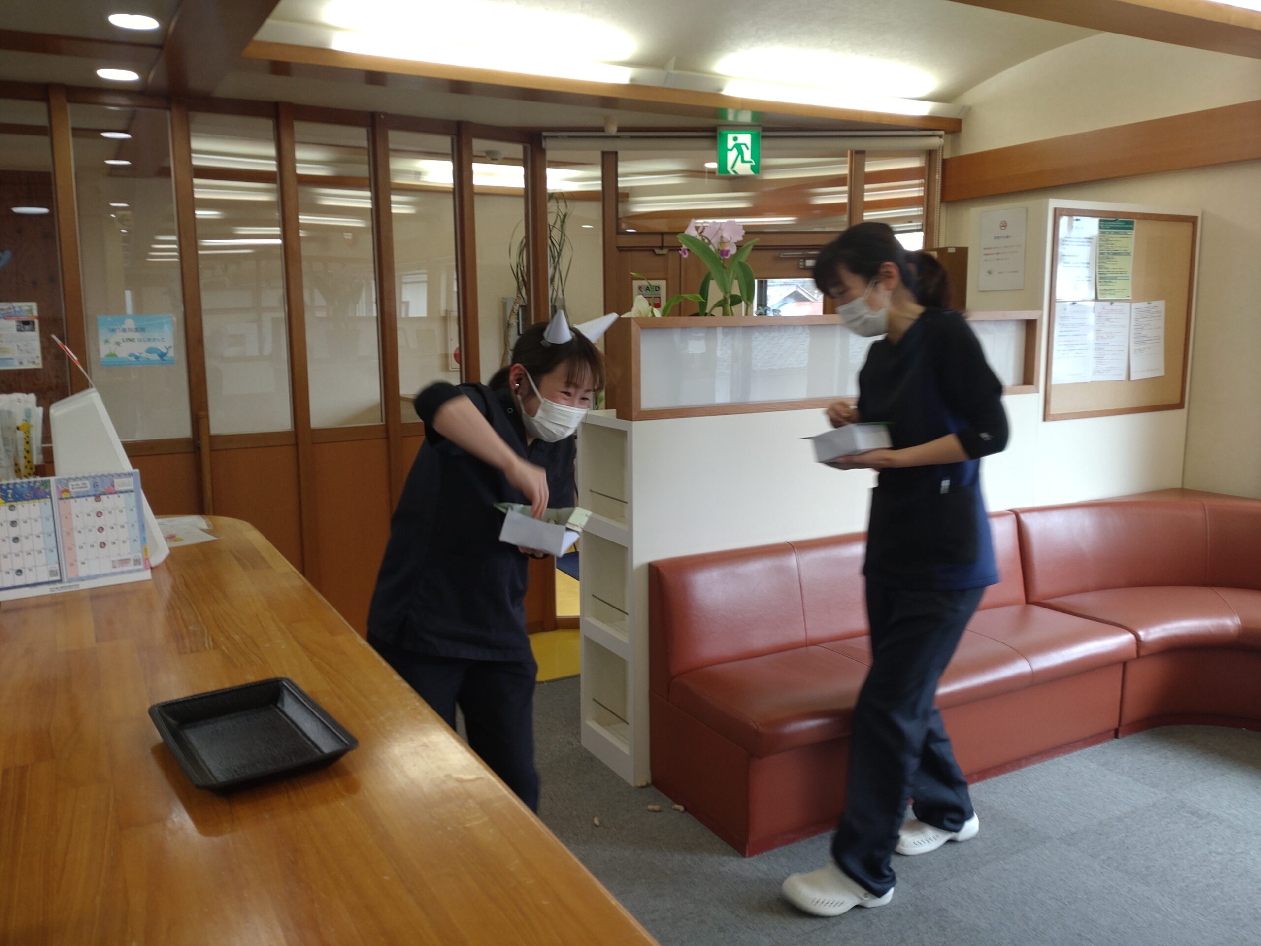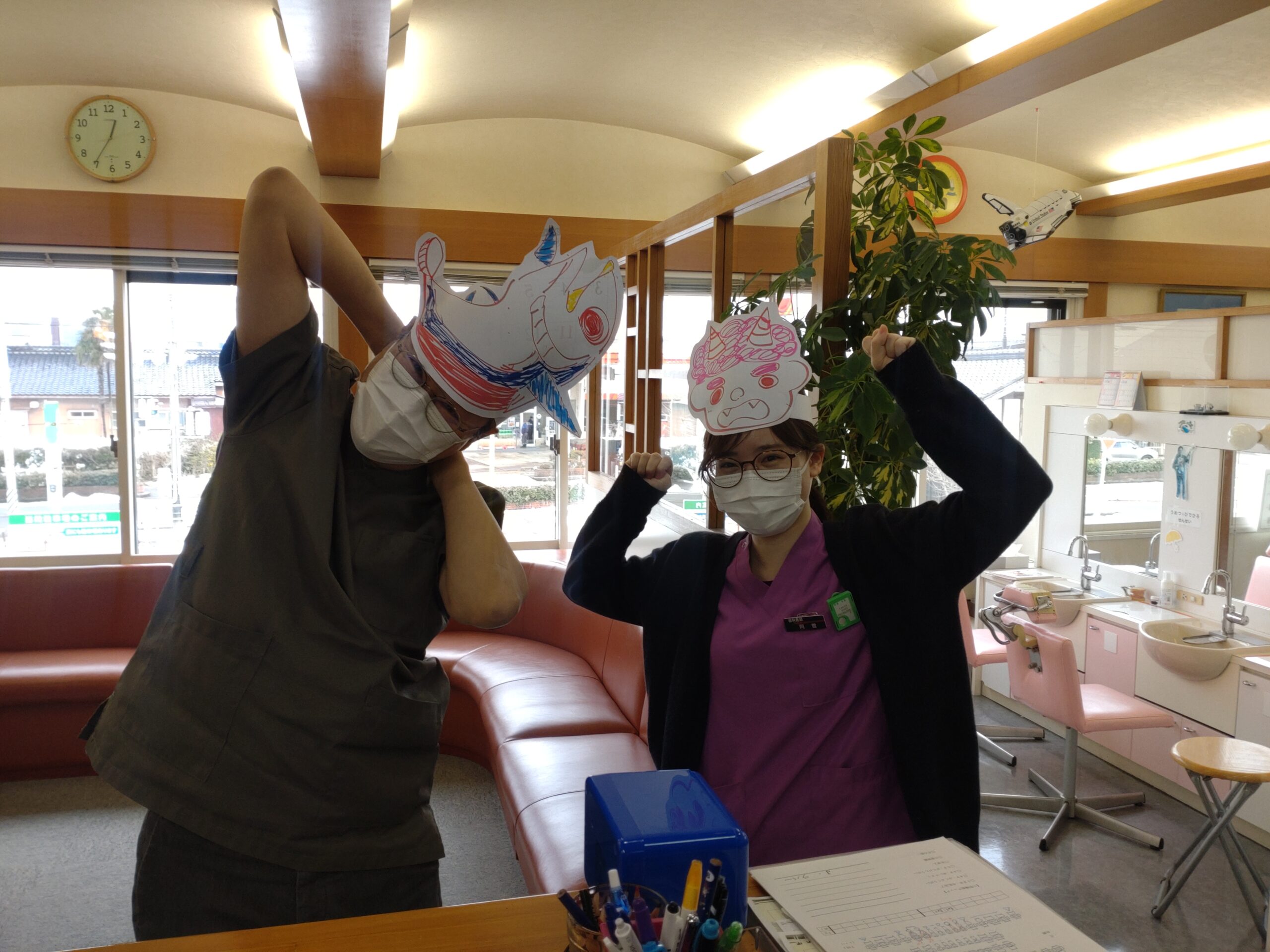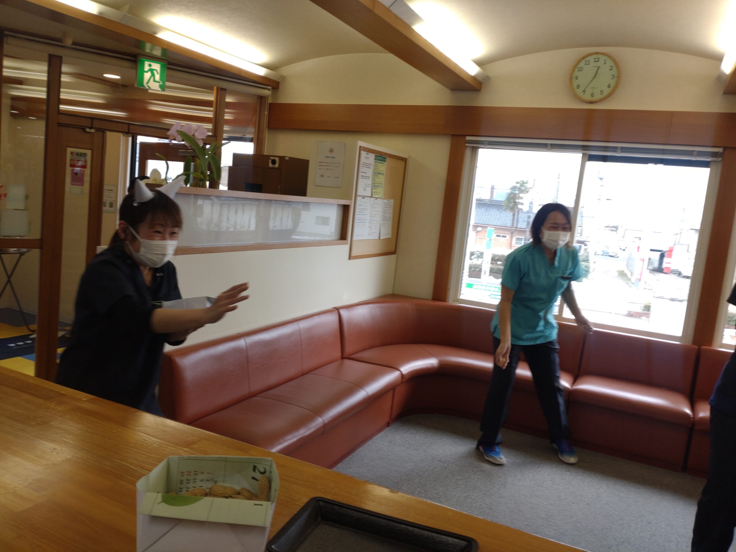 今日はうめつ歯科医院で 節分の豆まきをしました。